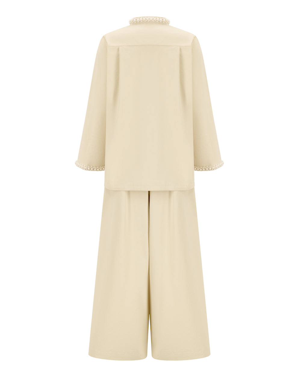 طقم راقي يناسب المناسبات، فخم وحلو وفي نفس الوقت أنيق وعملي، مع إضافة لمسة لؤلؤية بلون راقٍ مناسب للعيد، ويتميز بشال ملاصق.