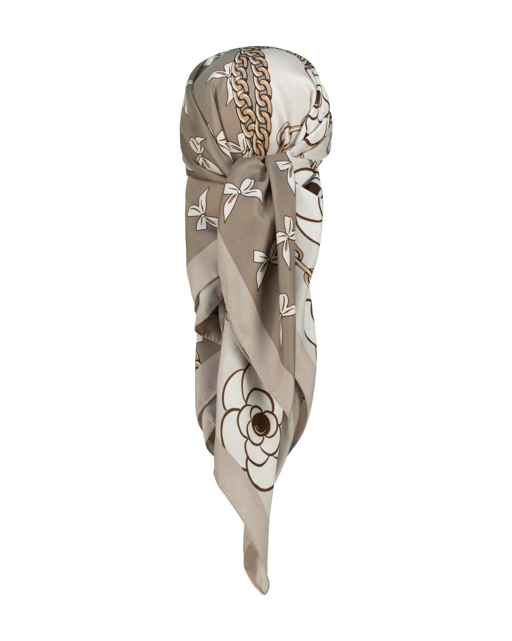 Luxury satin scarf with a matte silky finish, sized 90×90 cm, adding an elegant touch to your look.