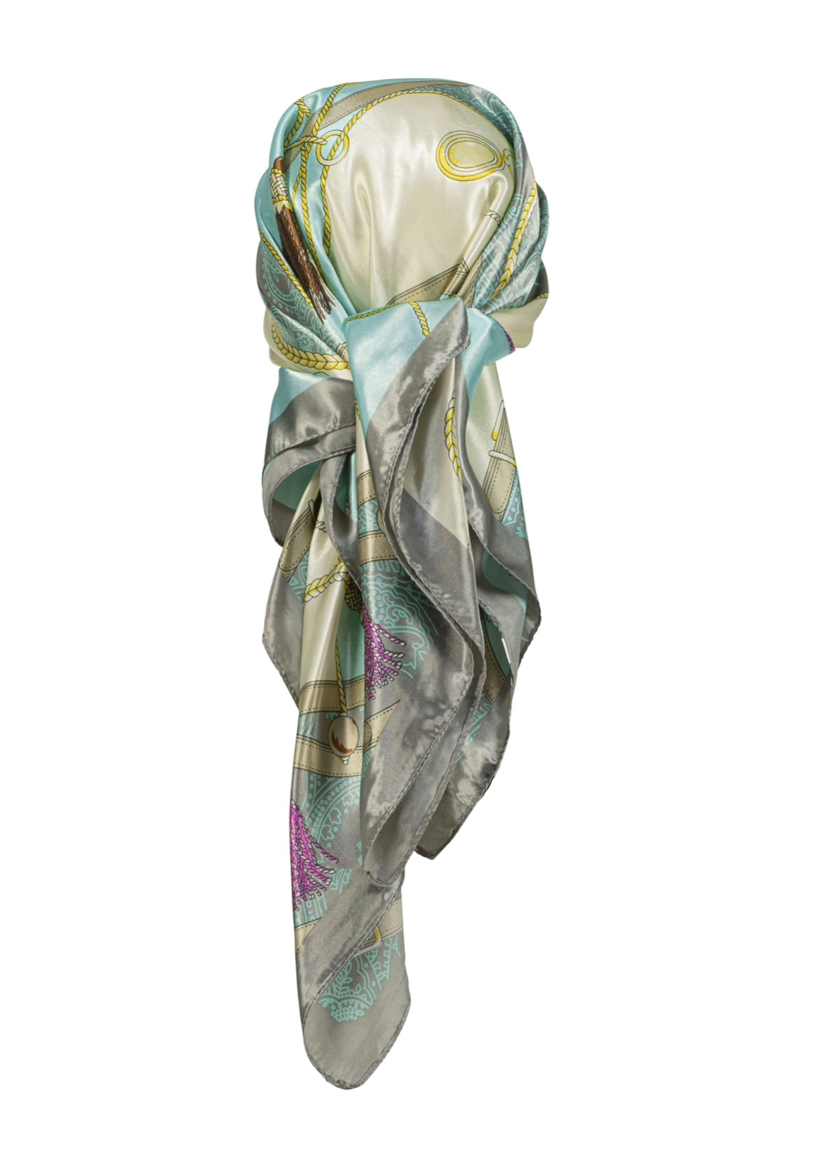 Luxury satin scarf with a subtle shine, sized 90×90 cm, adding an elegant touch to your look.