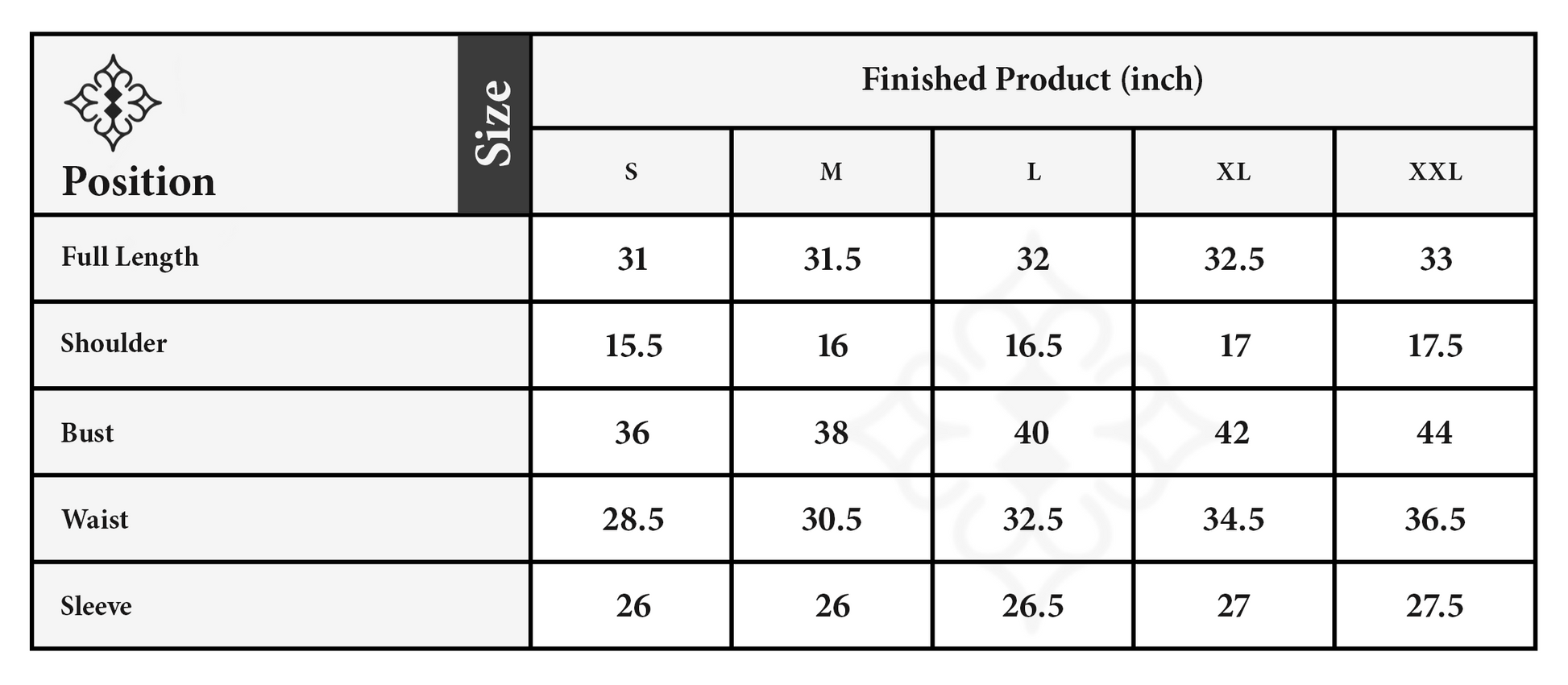 نرجو الاطلاع على جدول المقاسات قبل إتمام الطلب.