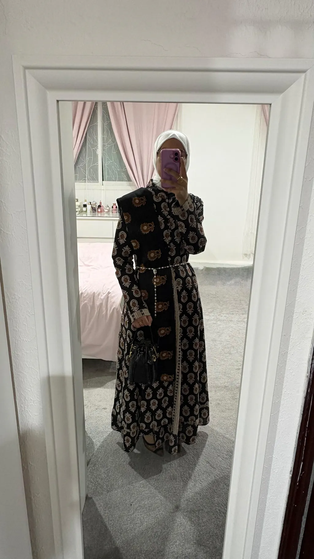 • شال متناسق يكمل الإطلالة، مضيفًا دفء وأناقة في الوقت نفسه.
