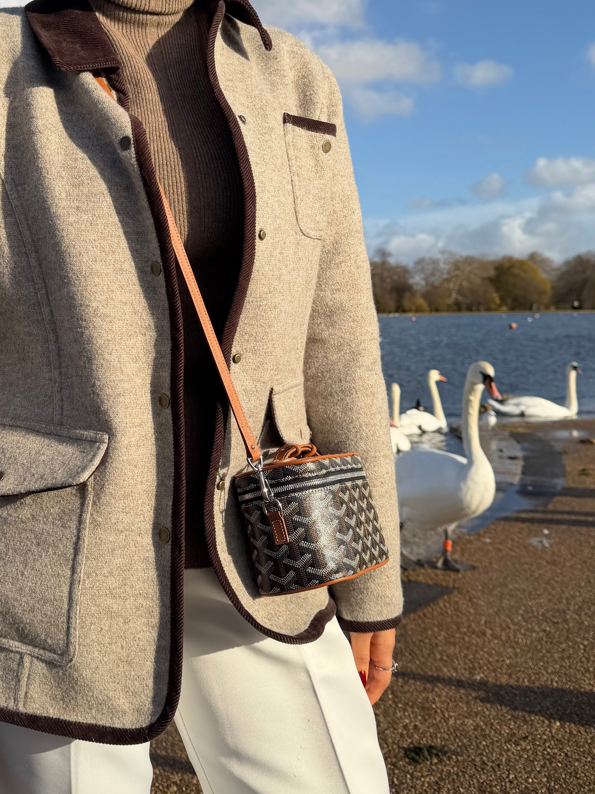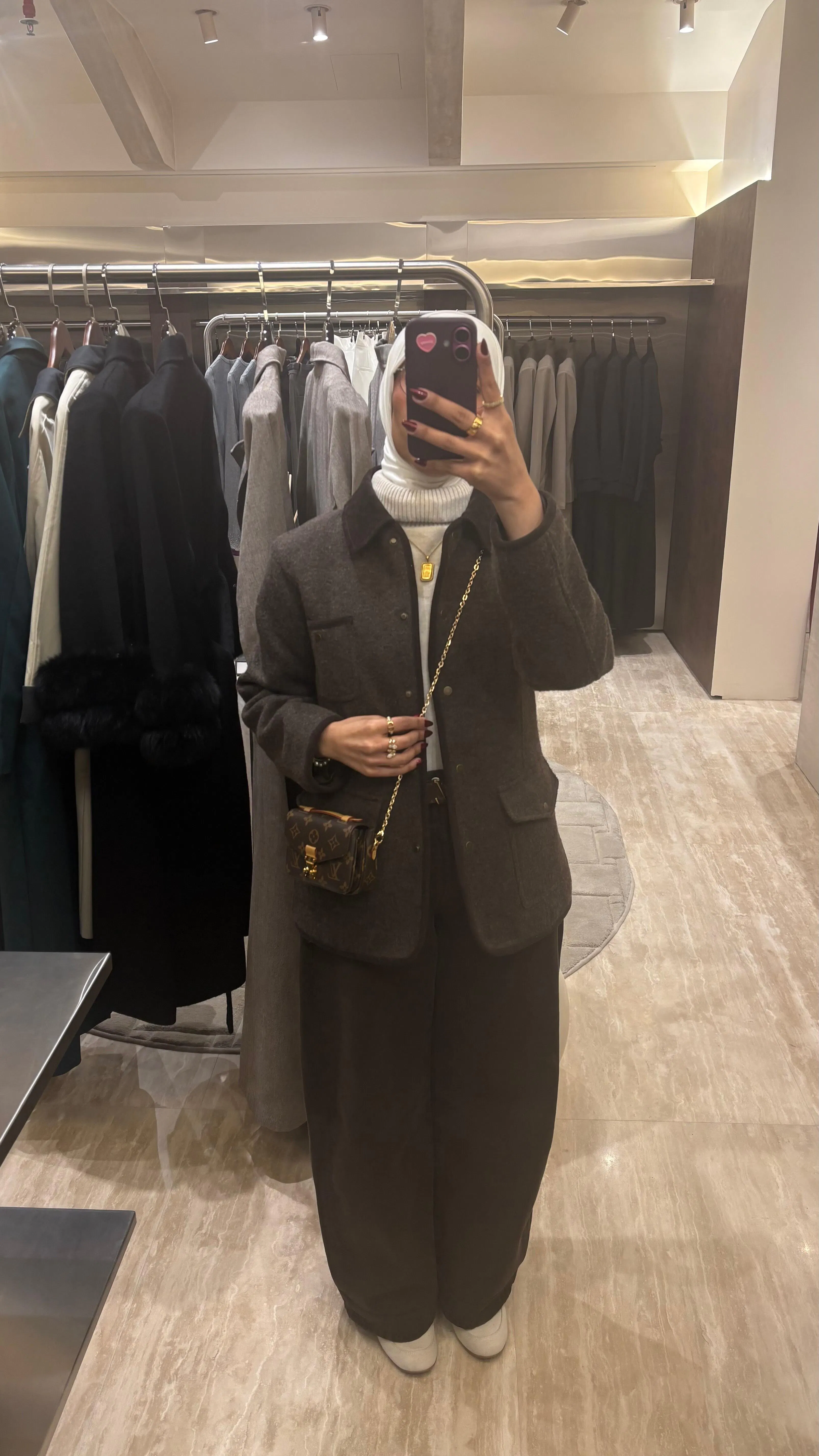 جاكيت أنيق وعملي يجمع بين الحرفية الراقية والعملية اليومية: خامته دافئة ومهيكلة تعطي شكلًا أنيقًا عند اللبس، والتفاصيل مثل الياقة المتباينة والجيوب الواضحة تمنحه طابعًا كلاسيكيًا مع لمسة عصرية. البطانة المبطنة تحافظ على الراحة والدفء دون ثقل زائد، وهو قطعة مرنة تناسب الخروجات العادية والعمل في الأيام الباردة.