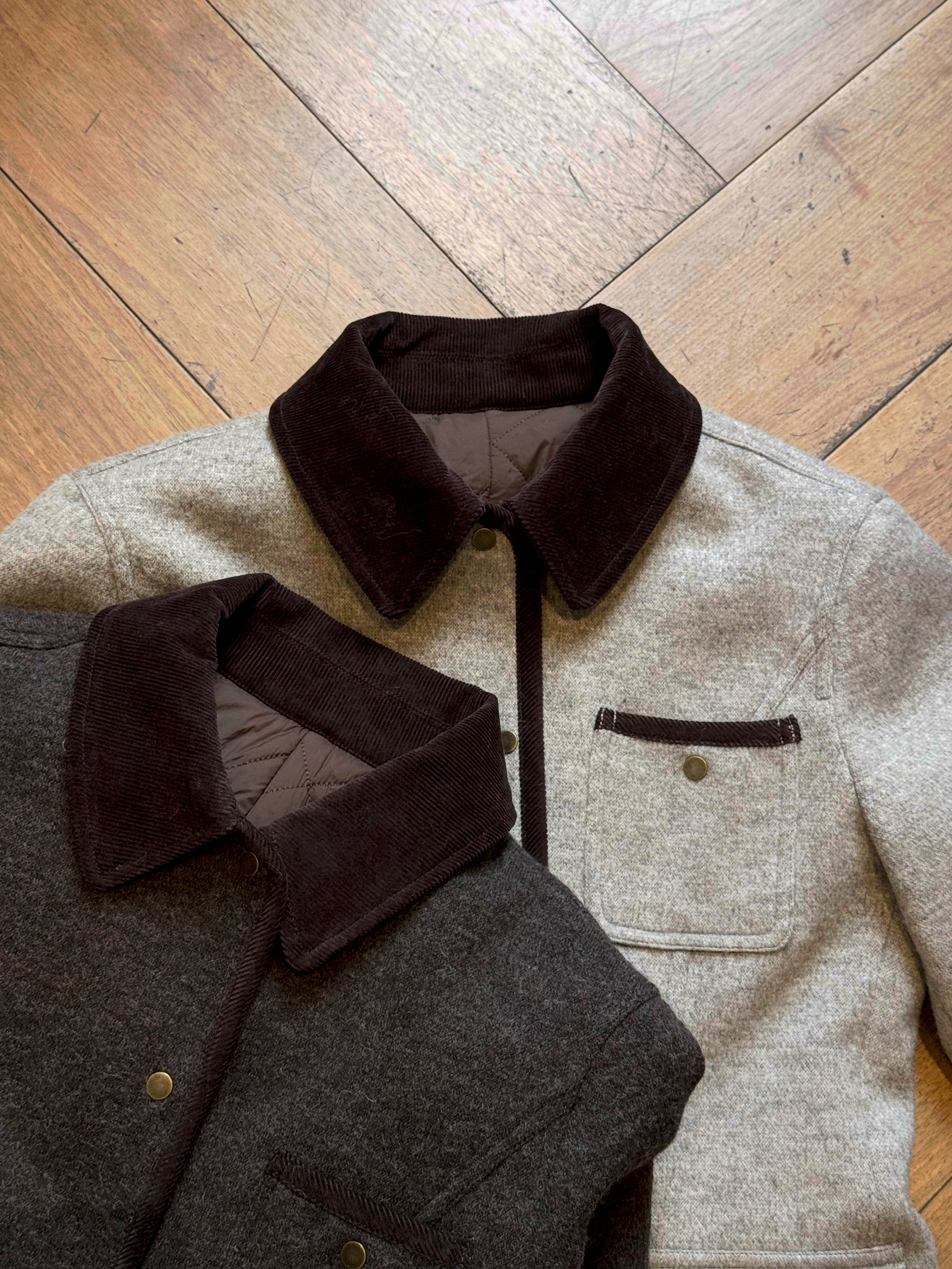 This jacket blends refined craftsmanship with everyday practicality: its structured, warm fabric keeps a smart silhouette, while details like the contrasting collar and practical pockets give it a timeless yet contemporary feel. The quilted lining adds warmth and comfort without bulk, making it a versatile piece for both casual outings and colder workdays.