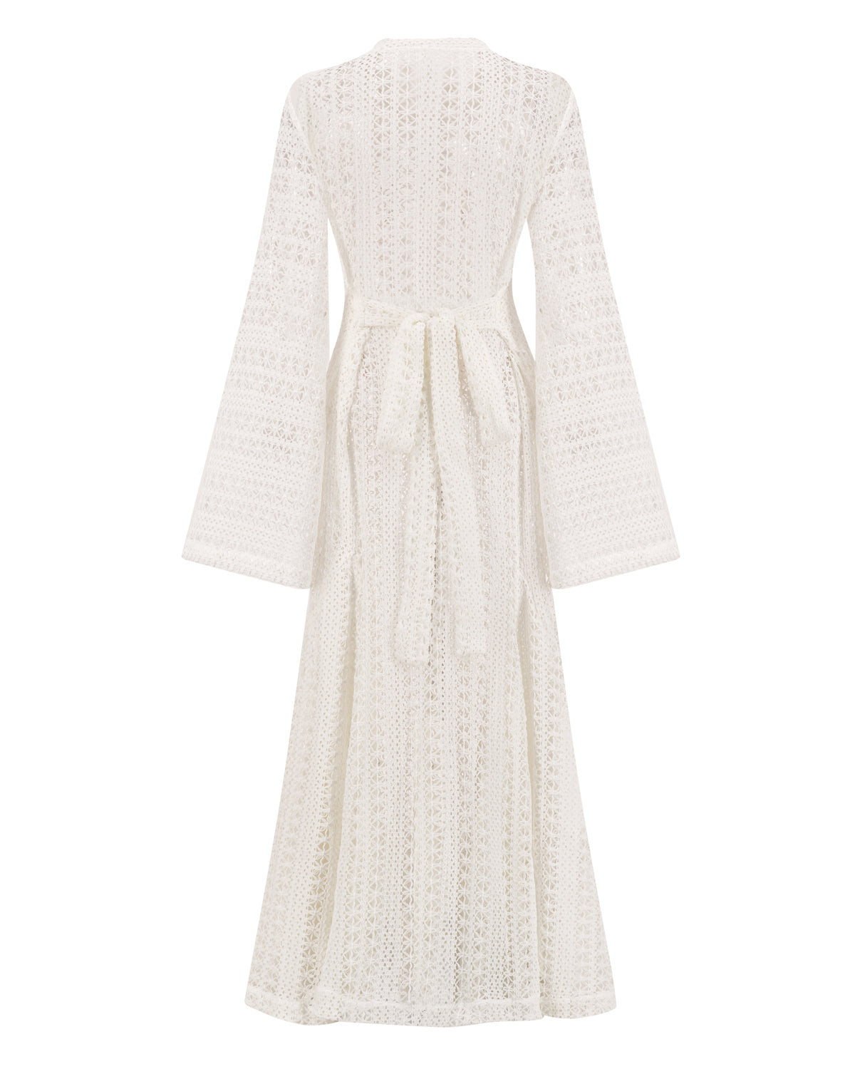 فستان شبك غير مبطن بربطة خلفية يمكن تحويلها للأمام، مثالي للبس فوق البوركيني لإطلالة بحرية أنيقة وعملية.
