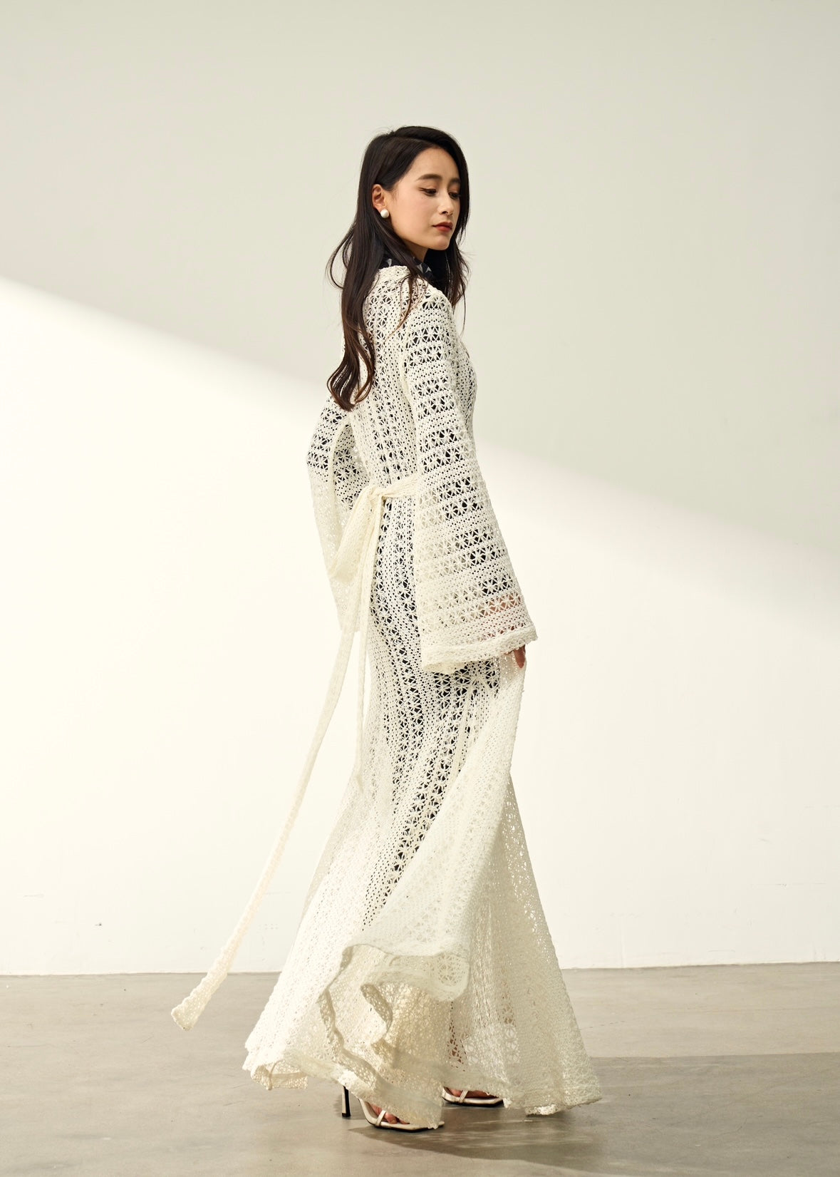Unlined mesh dress with a back tie that can be wrapped to the front, perfect to wear over a burkini for a stylish and practical beach look.