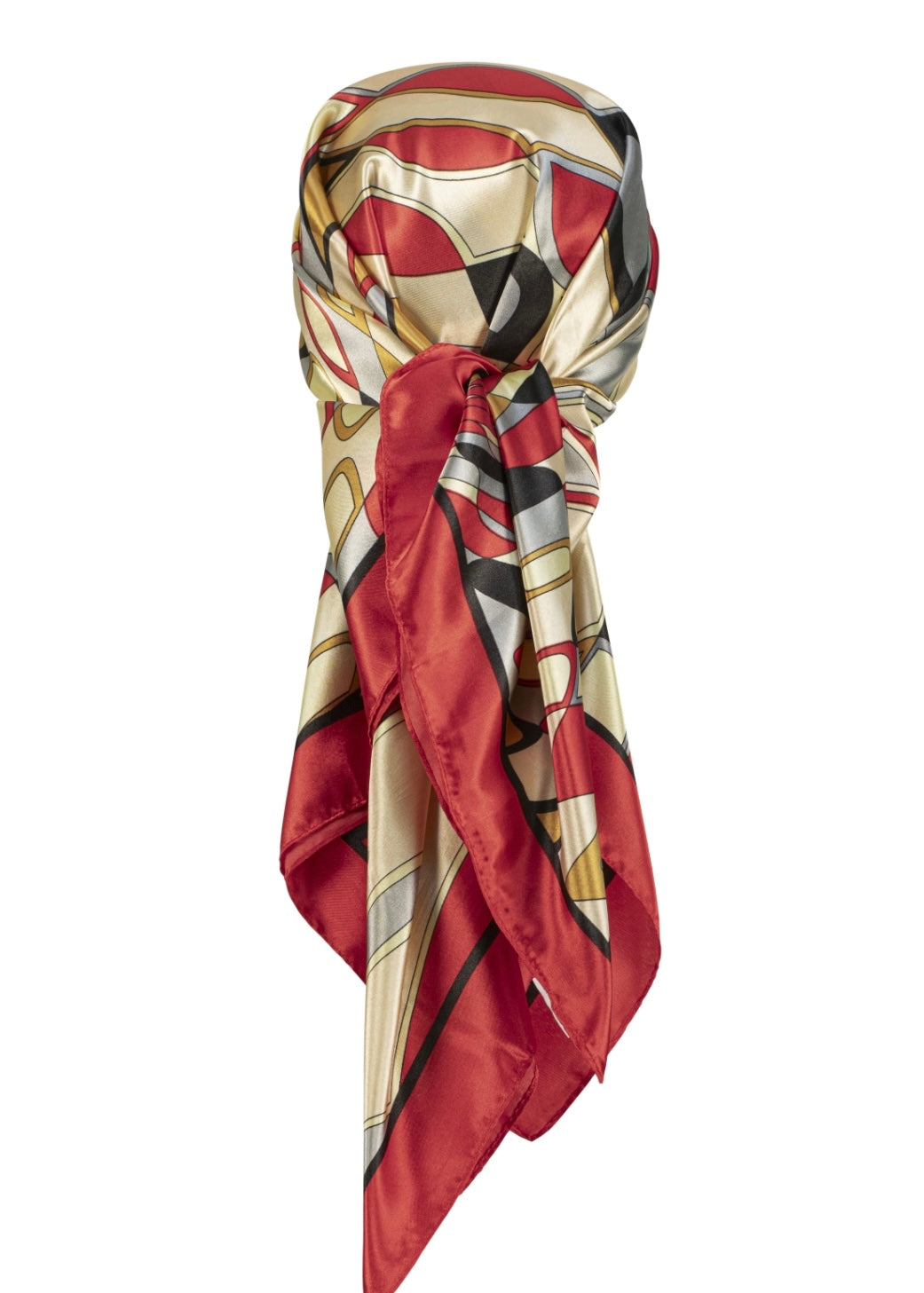 Luxury satin scarf with a subtle shine, sized 90×90 cm, adding an elegant touch to your look.